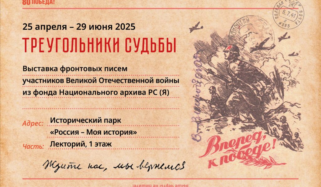 25 апреля в Историческом парке «Россия – Моя история» откроется выставка «Треугольники судьбы», где впервые экспонируются подлинные фронтовые письма, хранящиеся в архивах, и их копии, сообщает Национальный архив РС(Я).