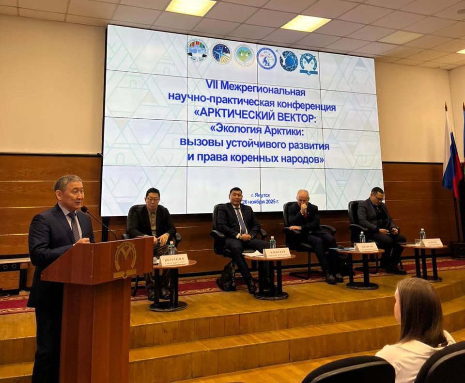 26 ноября 2025 года в Академии наук РС(Я) в рамках VI Северного Форума по устойчивому развитию состоялась VII Межрегиональная научно-практическая конференция под названием «Арктический вектор: Экология Арктики: вызовы устойчивого развития и права коренных народов». Мероприятие было организовано Министерством по развитию Арктики и делам народов Севера РС(Я), Министерством экологии, природопользования и лесного хозяйства РС(Я), Академией наук РС(Я), Арктическим научно-исследовательским центром РС(Я) и Северо-Восточным федеральным университетом им. М.К. Аммосова.