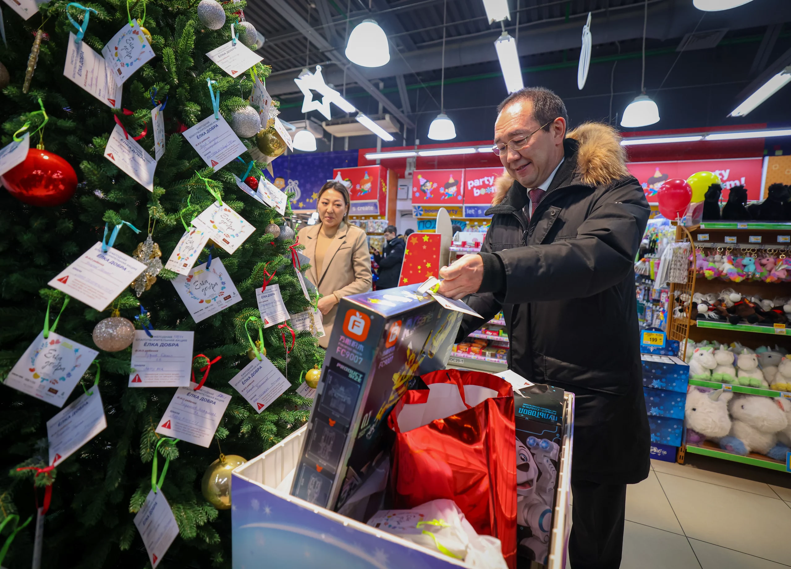 Глава Республики Саха (Якутия) Айсен Николаев принял участие в ежегодной благотворительной акции «Ёлка добра», исполнив новогодние желания Жанны Гороховой и Эрсана Иванова из коррекционной школы.