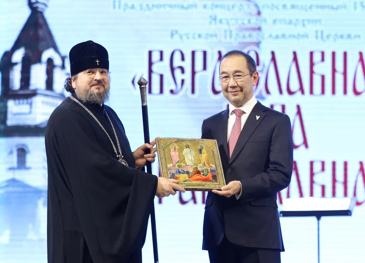 Во вторник в Якутске состоялось торжественное мероприятие, посвящённое 155-летию Якутской епархии. Православных христиан, жителей республики с этим знаменательным событием поздравил Глава Якутии Айсен Николаев.