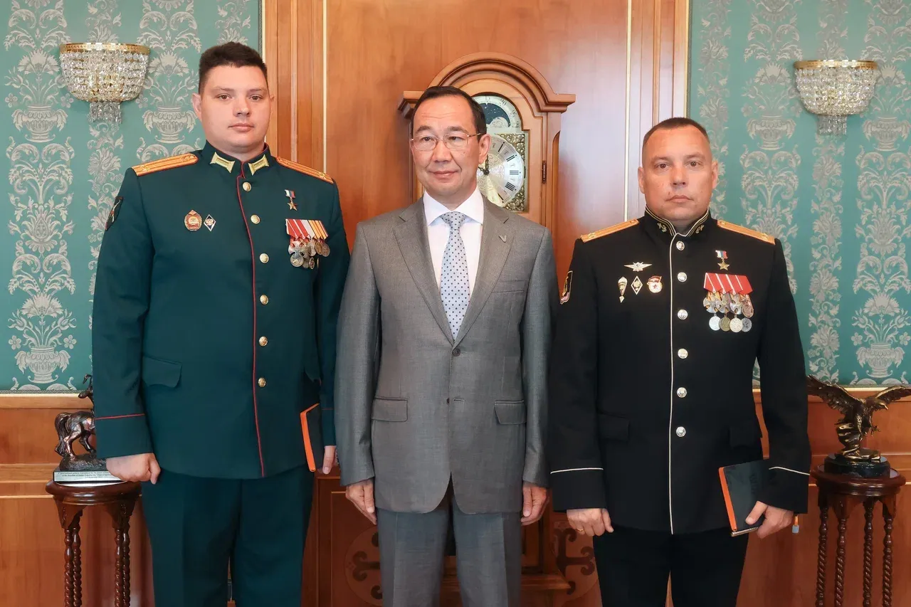 Глава Якутии в среду встретился с Героями Российской Федерации Николаем Соболевым и Дмитрием Куценко — участниками второго потока федеральной кадровой программы «Время героев». Айсен Николаев является их наставником.