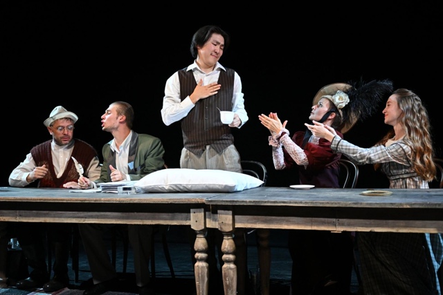 Участники актерского и режиссерского интенсивов представили эскизы чеховских произведений, а наш земляк исполнил роль Студента в эскизе «Московский Гамлет» режиссера Ирины Кондрашовой, выбравшей цикл коротких заметок фельетонов «Осколки московской жизни».