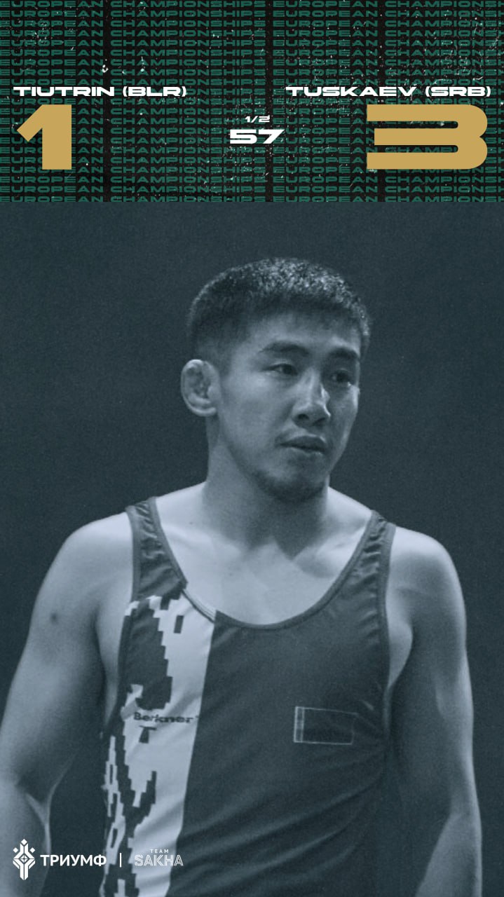 В Братиславе проходит чемпионат Европы по вольной борьбе. Якутянин Арыйаан Тютрин, представляющий Беларусь, в полуфинале веса 57 кг проиграл россиянину Азамату Тускаеву, выступающему за Сербию, со счётом 1:3.