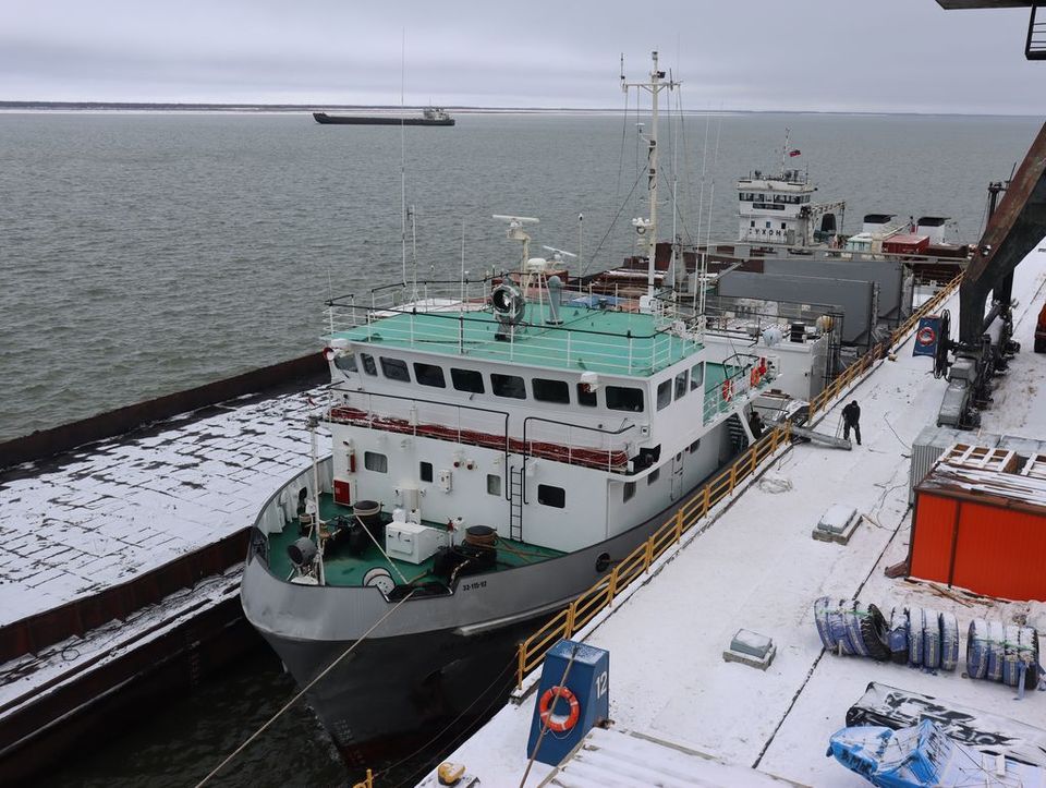 Буксир «Виктор Худорожко» загружается в порту Усть-Куйги для дальнейшей транспортировки груза в поселок Батагай. Судно «СПО-826» находится в ожидании выгрузки на рейде в Якутске, после чего планируется его загрузка для отправки в поселок Жиганск и село Кюсюр.