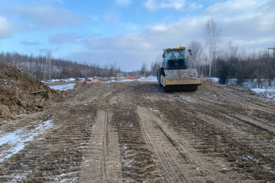 В настоящее время дорожная организация АО «РИК Автодор» занимается устройством земельного полотна и завершает укладку 12 гофрированных труб для водопропускных систем. При текущем темпе работ подрядчик планирует запустить асфальтобетонный завод к концу мая.