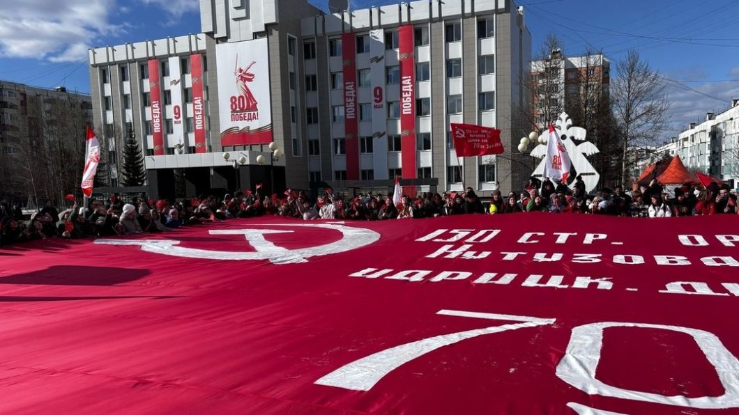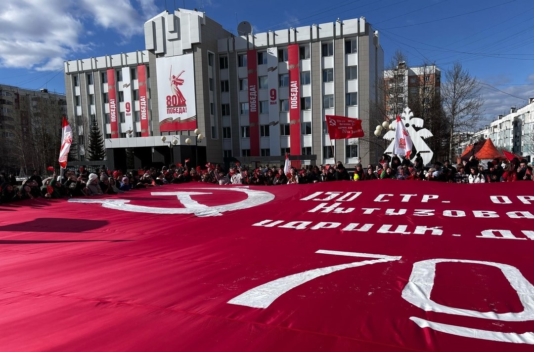 Фотофакт: флешмоб «Знамя Победы» в Нерюнгри