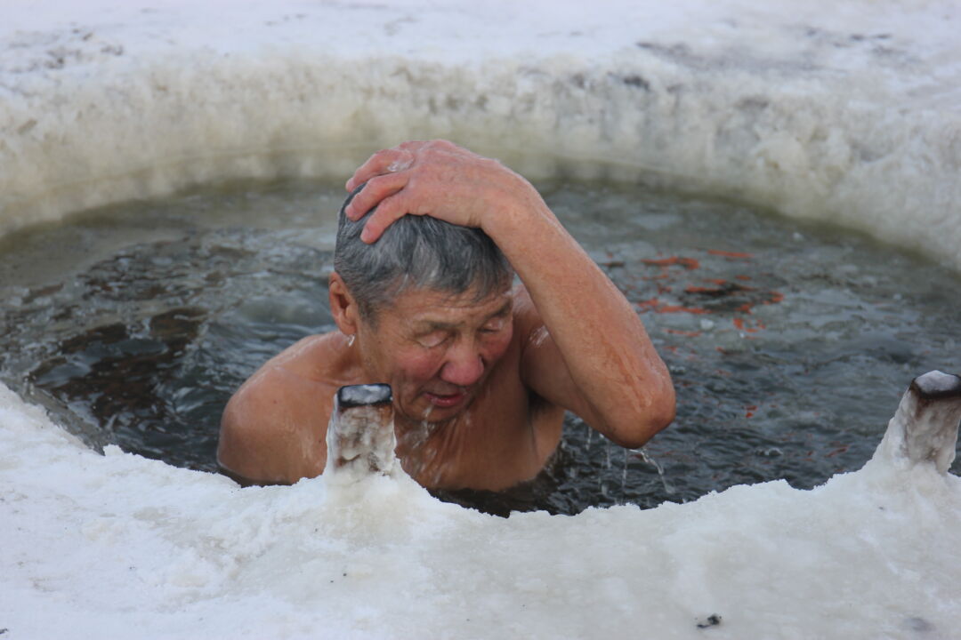 Пока остальные радуются тому, что с минус 50 «потеплело» до минус тридцати с копейками, члены чурапчинского объединения «Чэбдик» плещутся себе в проруби, чему стал свидетелем корреспондент газеты «Сана олох». Что для них тридцать с копейками! Несколько лет вон в Оймяконе при минус 57 ныряли. Гвозди бы делать из этих людей!