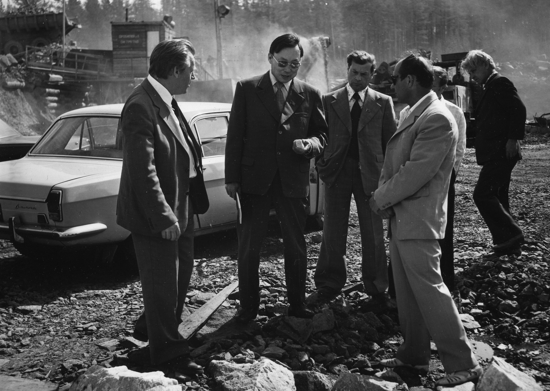 Фото: Национальный архив РС(Я). Рабочее совещание на месте строительства Нерюнгринской ГРЭС.