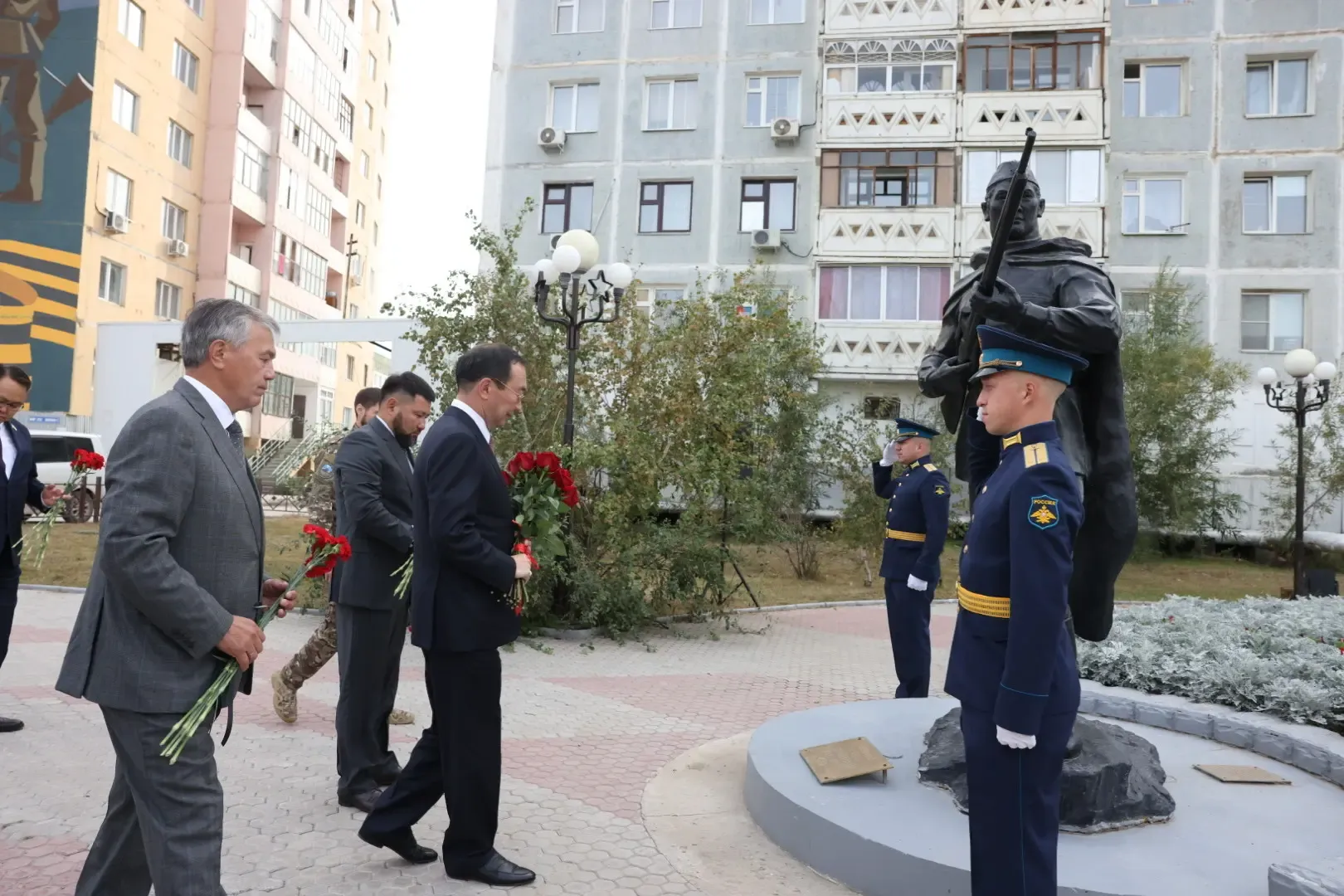 В среду 3 сентября Глава Якутии Айсен Николаев почтил память защитников Родины, погибших в боях против немецко-фашистских захватчиков и в ходе разгрома императорской армии Японии. В день 80-летия Победы над милитаристской Японией и окончания Второй мировой войны Ил Дархан возложил цветы к памятнику якутского снайпера и мемориальному комплексу «Солдат Туймаады». Обращаясь к собравшимся, Айсен Николаев подчеркнул, что память о подвигах фронтовиков и самоотверженном труде в тылу является священной для якутян, сообщает пресс-служба АГиП РС (Я).