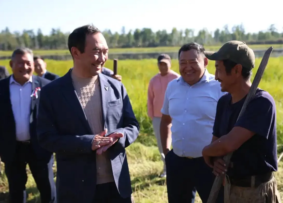 Во время своей рабочей поездки в Сунтарский район Айсен Николаев встретился с сенокосчиками. В местности «Бэрэ» неподалеку от села Сунтар Ил Дархан познакомился с семьями Ивана Петрова и Михаила Тимофеева.