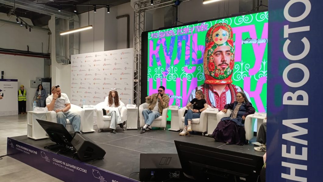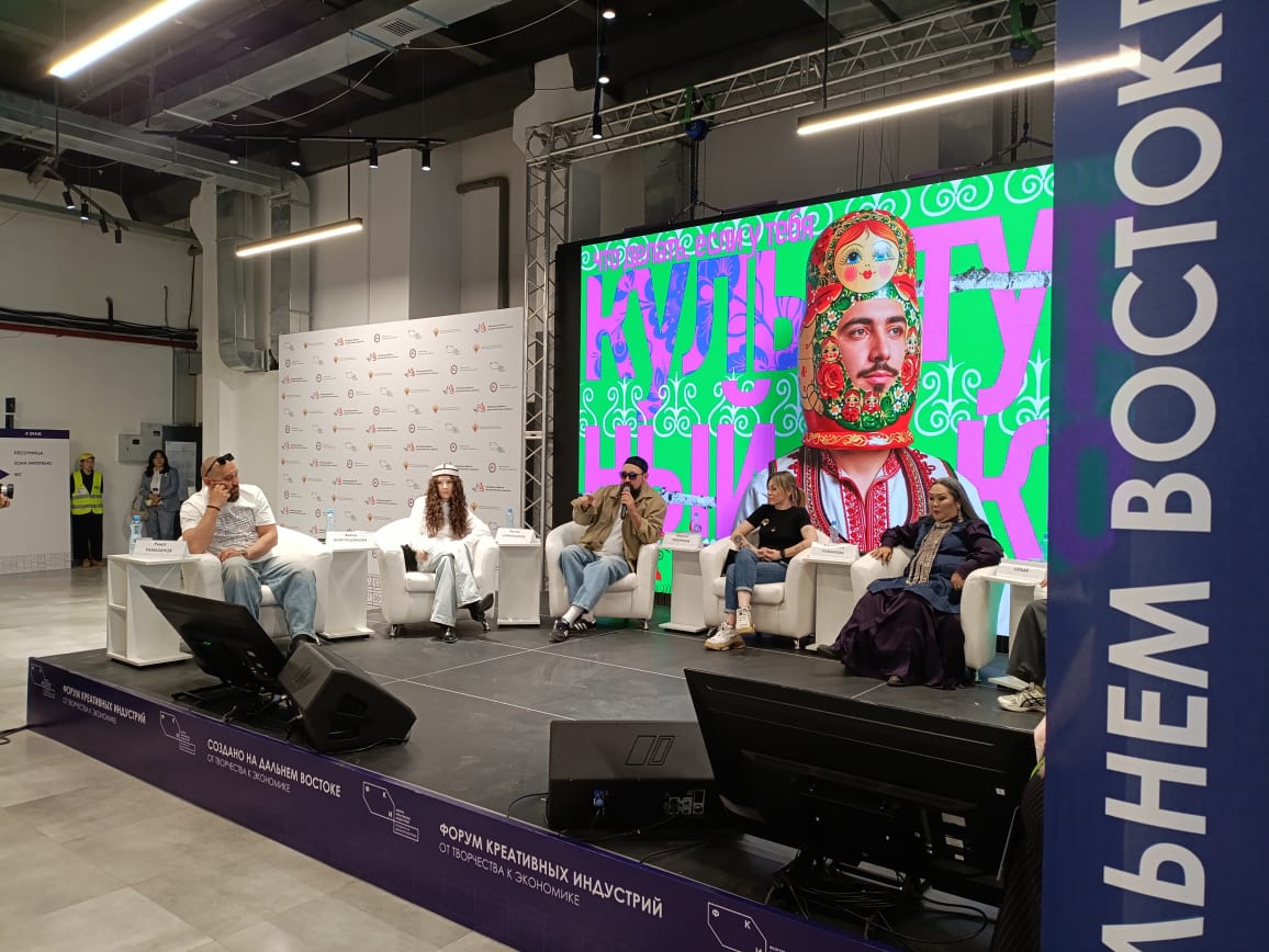 Башкирская группа «Ay Yola» в полном составе прибыла в Квартал труда на сессию «Культурный код Дальнего Востока» в первый день II Международного форума креативных индустрий «Создано на Дальнем Востоке» — перед своим концертом на Комсомольской площади.