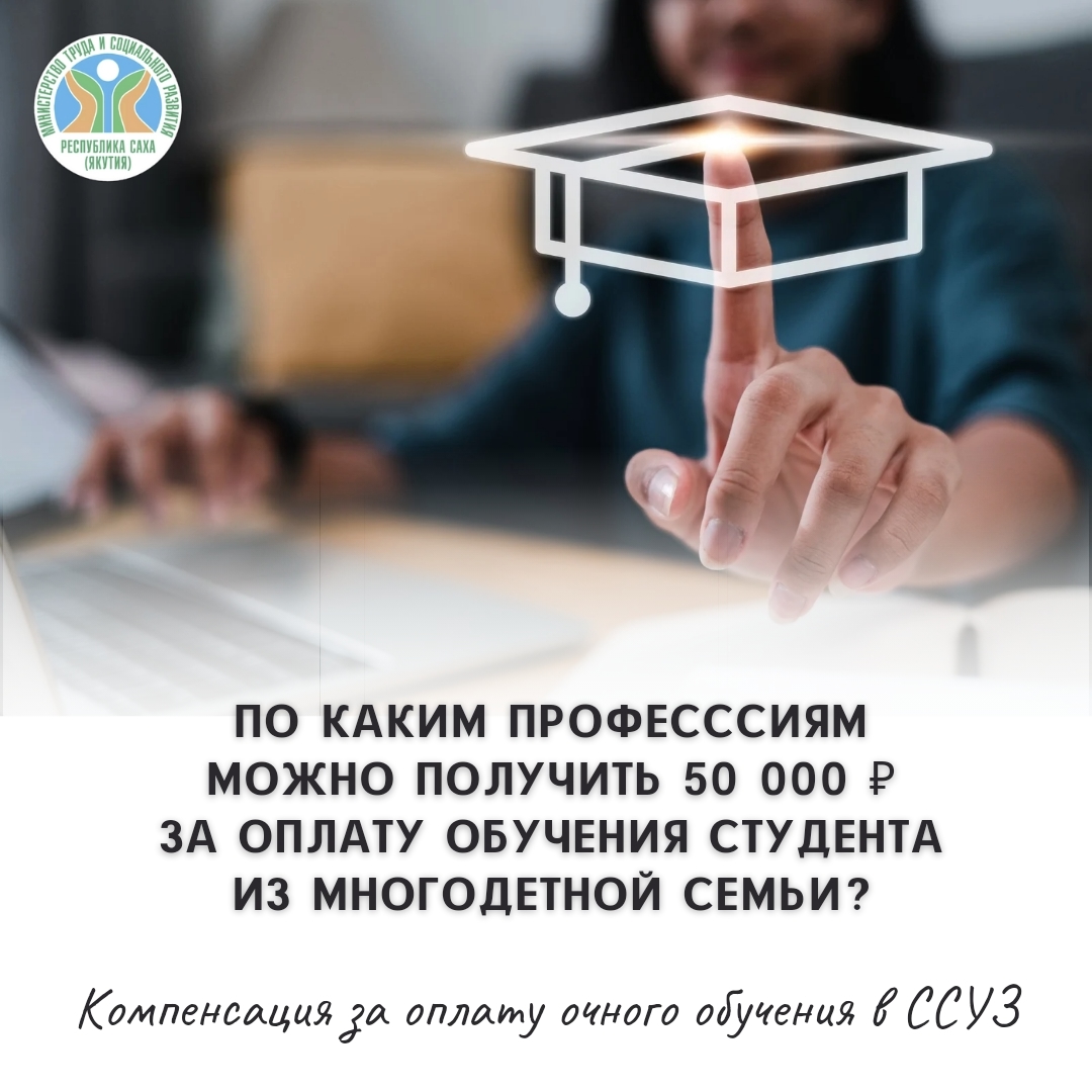 Госпаблик Минтруд Якутии рассказывает о том, по каким профессиям можно получить компенсацию за оплату обучения студента из многодетной семьи.