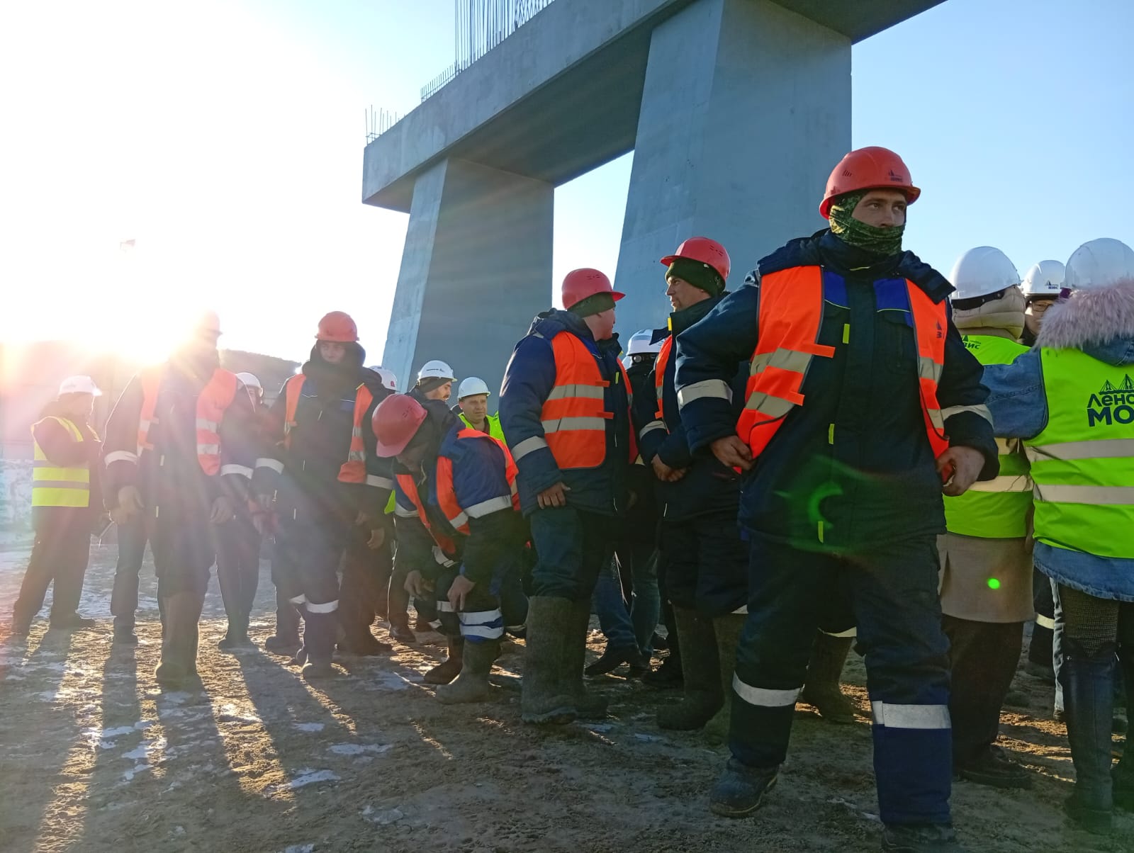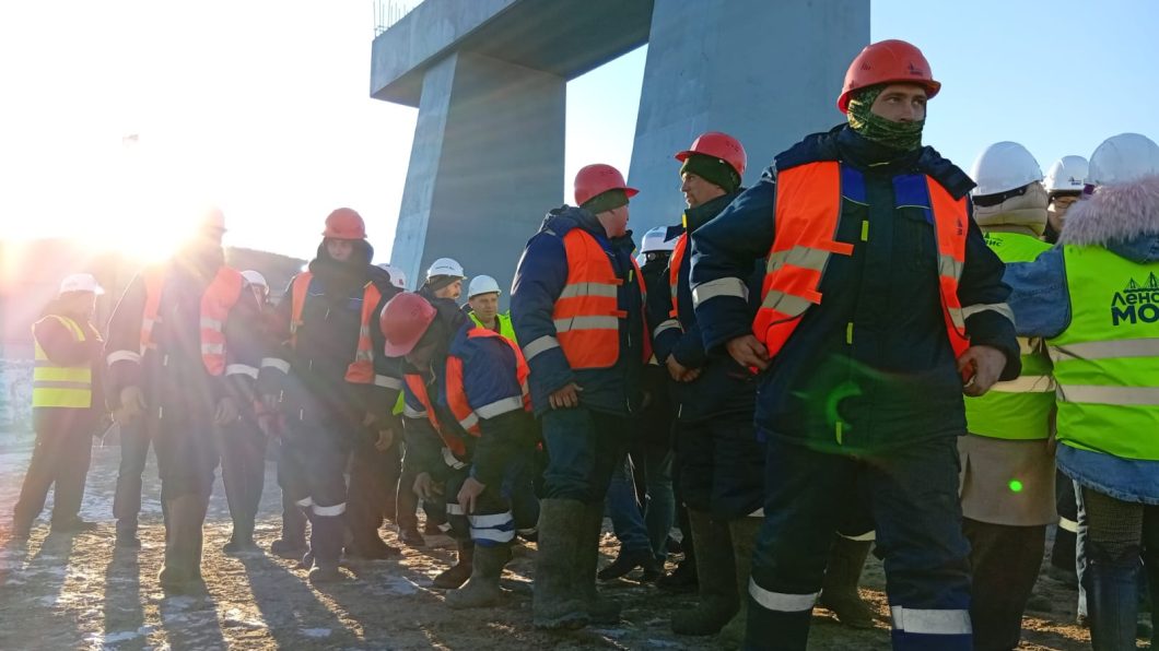 День, как и весь октябрь, в Якутске выдался тёплым. Погода на руку мостостроителям. Видно по ним, что это крепкая и опытная вахта – повидавшие большие мосты страны мужики из Сибири и городов центральной полосы России. Трудятся бодро, на основной стройплощадке тут и там видны всполохи электросварки, натужно скрипят по замерзающей почве экскаваторы, работает крановая техника.