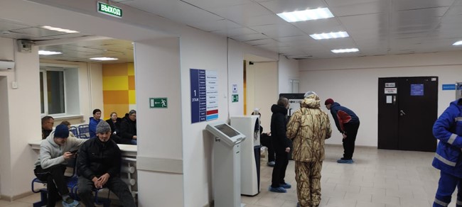 Людей, несмотря на нерабочий день, достаточно много, в очереди ожидают приема более десяти человек, по тому, как они выглядят, по их позам, можно предположить о полученных ими повреждениях. Два человека сидят на креслах-колясках, вытянув ногу, пожилая женщина бережно прижимает свою руку за локоть, кто-то болезненно морщится и держится за правую сторону груди, у одного мужчины распухшее лицо со следами засохшей крови, многие держат на весу свои руки.