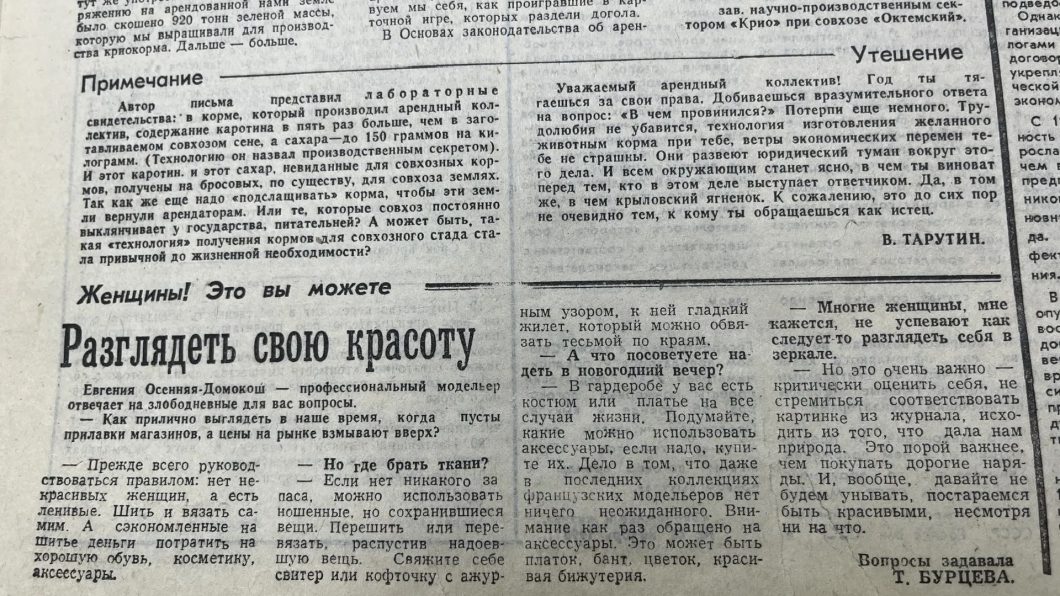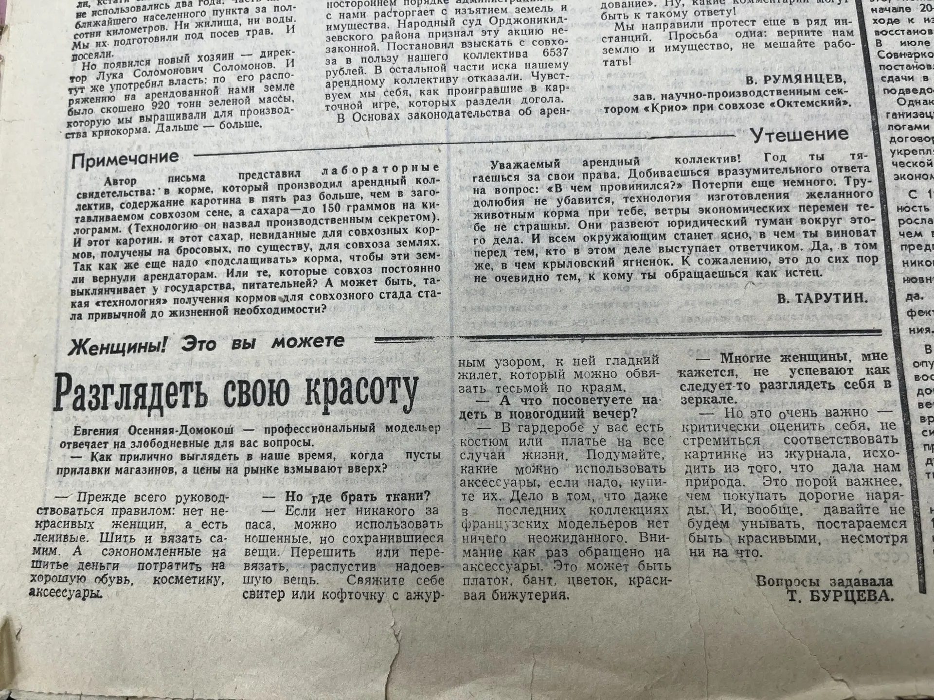 Продолжаем серию публикаций старых статей из газеты. В этот раз мы заглянули в предновогодний номер «Социалистической Якутии» от 31 декабря 1990 года. И нашли в нем советы модельера, как при небольшом бюджете и отсутствии выбора в магазинах выглядеть красиво и нарядно.