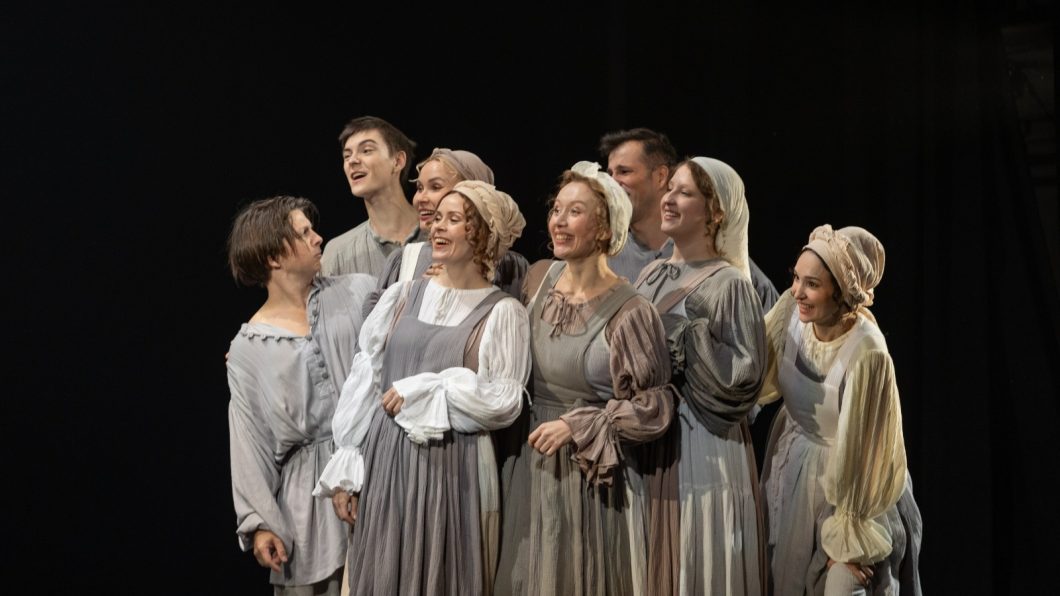 Труппа в полном составе выложилась, что называется, на все сто, перевоплощаясь из дворовых крестьян в великосветское петербургское общество и обратно, а зритель, завороженный происходящим на сцене, даже не задумывается, как артисты успевают не просто переодеться, а прямо-таки переродиться.