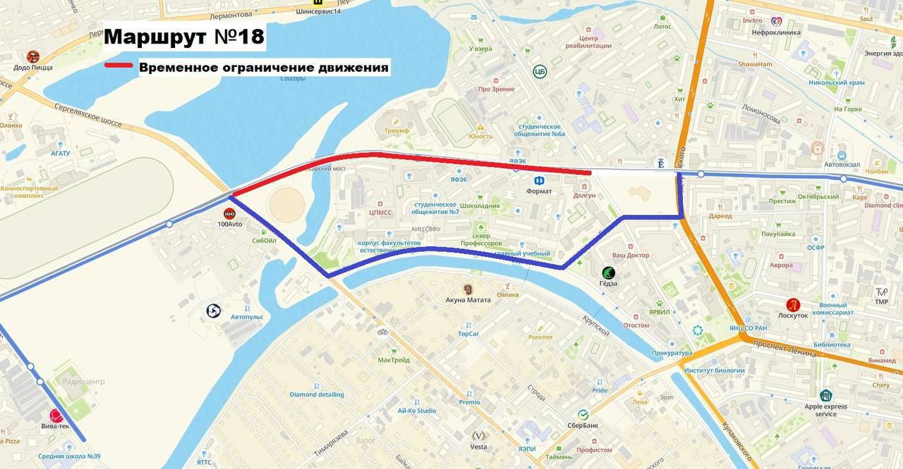 Транспорт следует по ул. Кулаковского, далее по ул. Белинского и возвращается на ул. Ойунского. Маршрут 100 будет следовать по ул. Лермонтова-ул. Петровского. «Просим пассажиров учитывать данное изменение при планировании поездок», — призвали в муниципалитете.