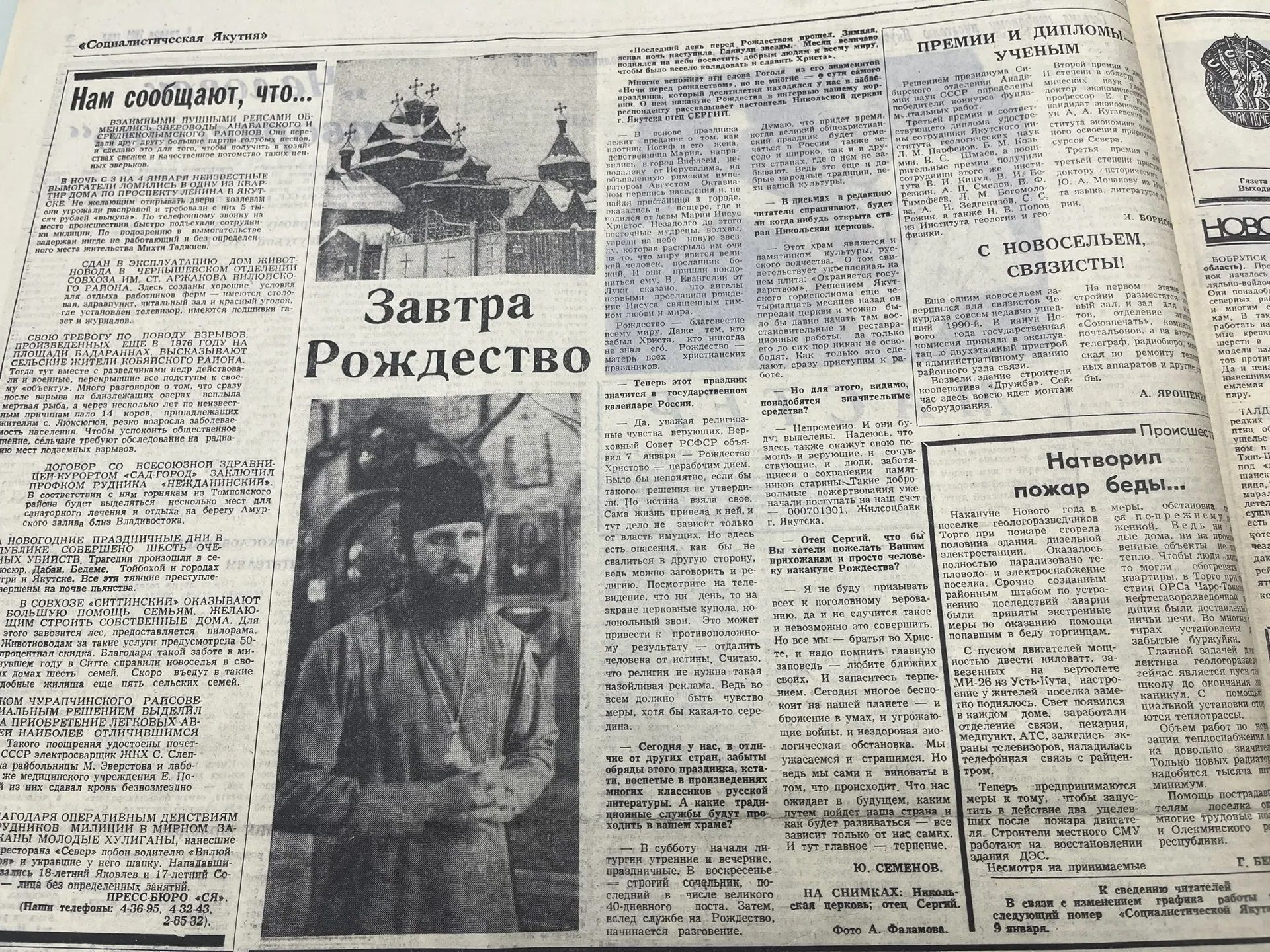 А накануне этой даты корреспондент газеты «Социалистическая Якутия» поговорил с настоятелем Никольской церкви г. Якутска отцом Сергием. Приводим интервью в нашей рубрике «Старые статьи».