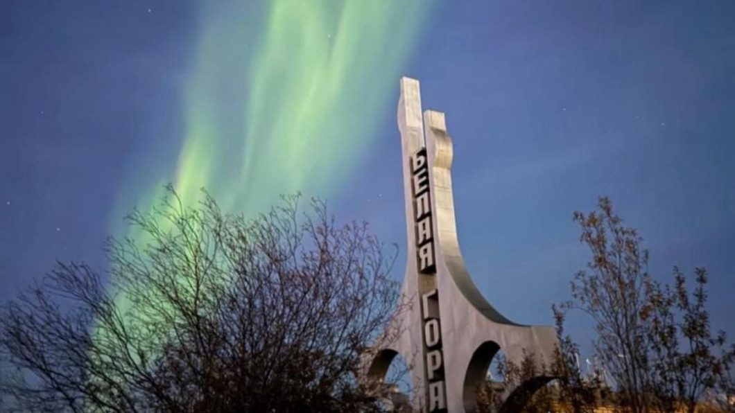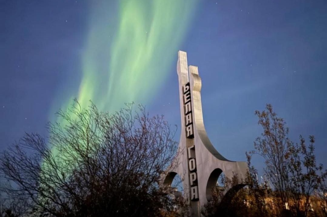 Северное сияние над Белой Горой, Абыйский район. Фото с телеграмм канала КП РС(Я) «Дороги Арктики».