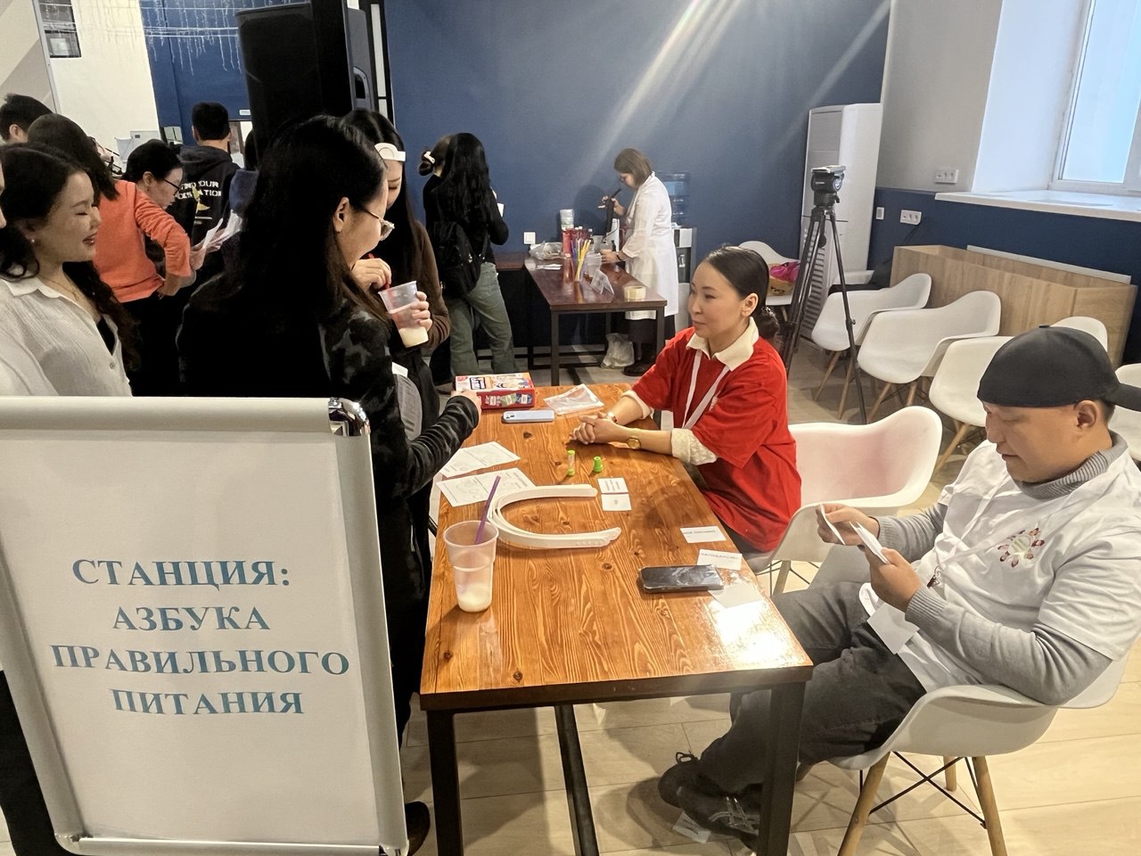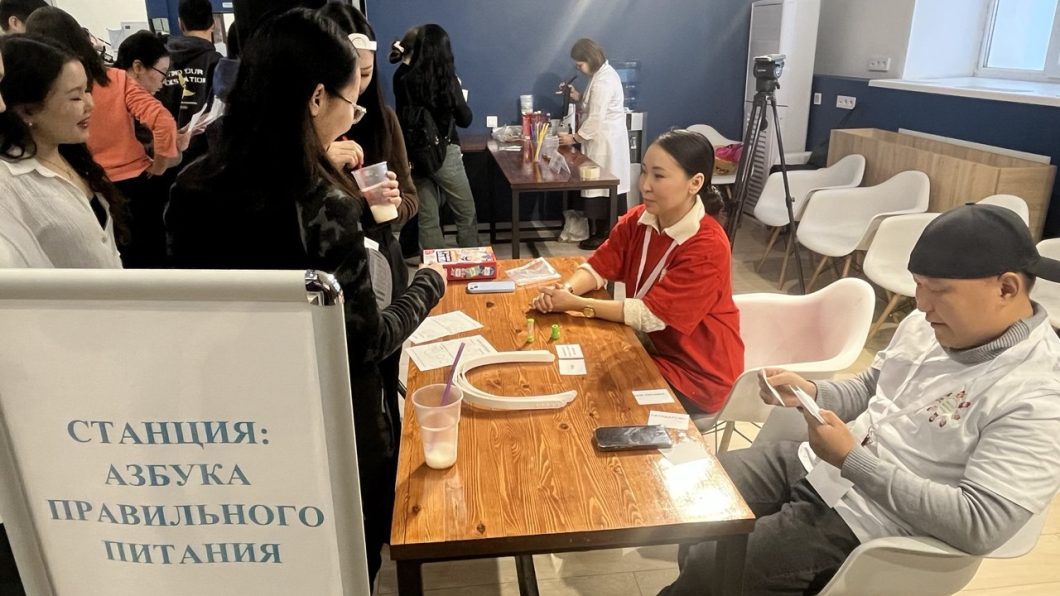 На третьей станции «Азбука правильного питания» опытный диетолог дает всем желающим консультации. Также проходит челлендж «Тарелка здорового питания», презентация кислородного коктейля и интерактивные VR-игры «Питательное приключение».