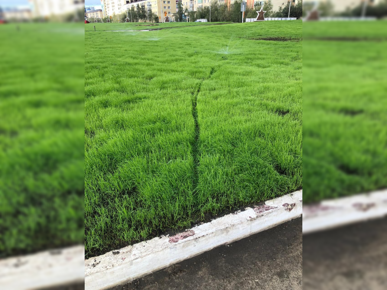 На днях жителей Якутска восхитил новый травяной газон, уложенный на площади Победы. Но не прошло и двух дней, как горожане начали по нему ходить, ездить на велосипеде и выгуливать собак. В конце концов мэр Евгений Григорьев обратился к гражданам с просьбой не губить молодую траву.