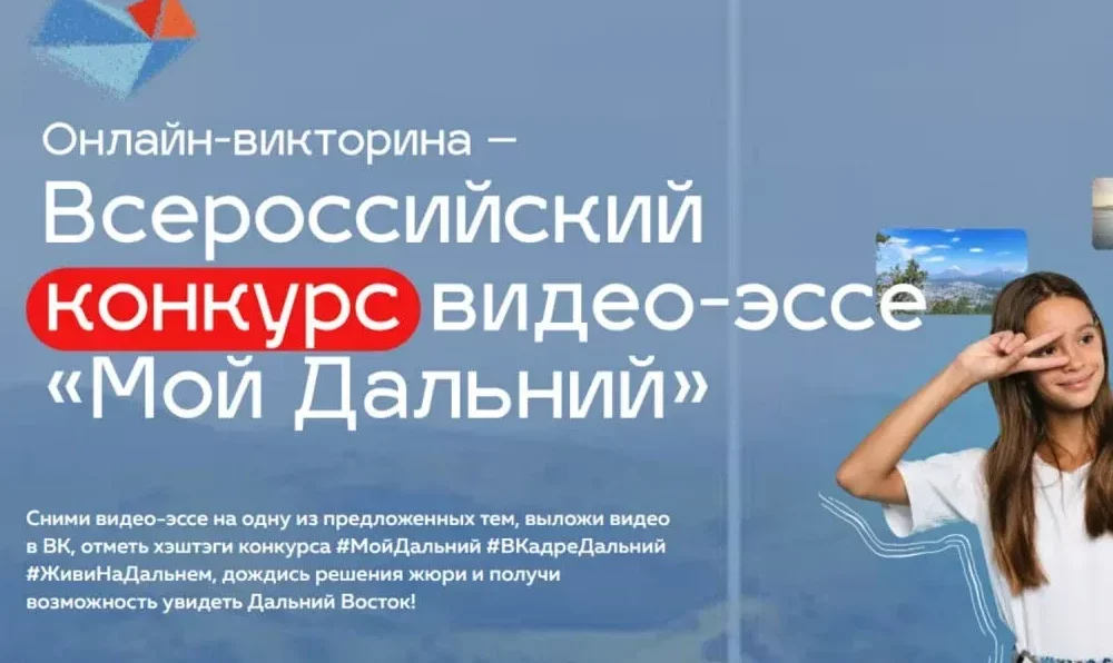 Онлайн-викторина — Всероссийский конкурсе видео-эссе «Мой Дальний» является частью ежегодного комплекса воспитательно-патриотических мероприятий «Дни регионов Дальнего Востока в Москве». В ноябре Национальном центре «Россия» будет открыта уникальная экспозиция, погружающая посетителей в мир возможностей и перспектив, которые открываются перед каждым Дальний Восток.