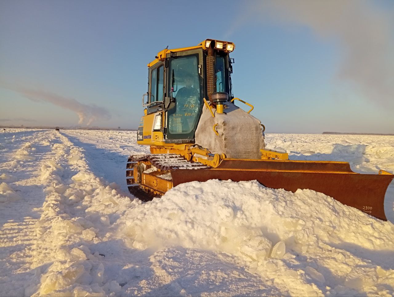 Пока на льду работает сравнительно лёгкая техника.  Это небольшие гусеничные и колёсные трактора с навесным оборудованием. Для сведения, для техники весом не более семи тонн требуется лёд толщиной не менее 30 см. Четырёхтонным колёсным тракторам — 25 см. Когда лёд станет толще, на него выйдут куда более мощные и производительные автомобили.