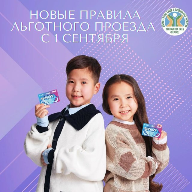 Госпаблик Минтруда Якутии сообщает, что с 1 сентября 2025 года изменятся правила оформления льготного проезда для детей из многодетных семей.