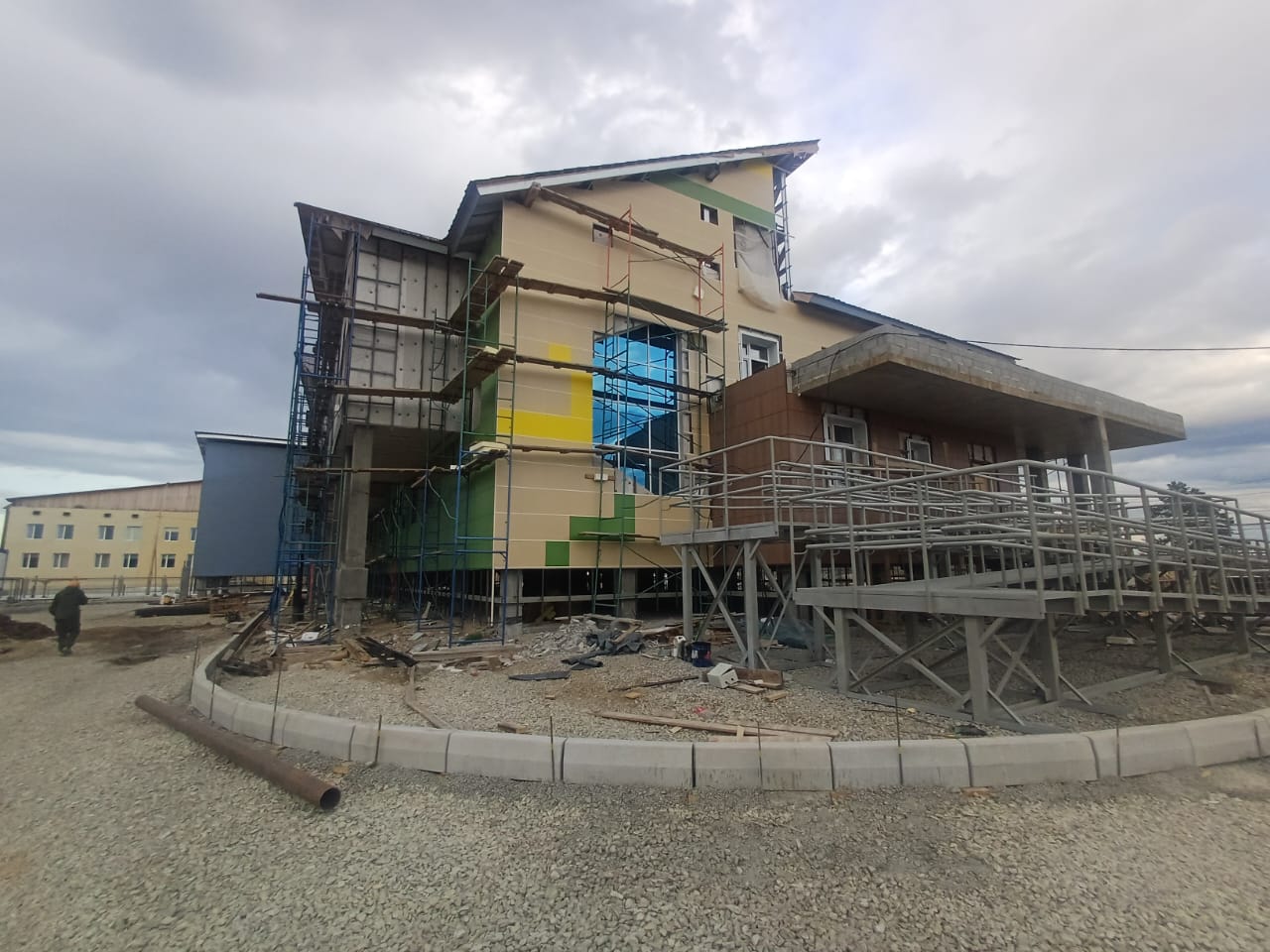 «Строительство идет без отставаний. На данный момент завершены работы по кладке стен и перегородок, утеплению и монтажу фасада, по устройству противопожарных резервуаров, по прокладке кабелей под штукатурку. Установлено ограждение территории, завершены черновые работы, обустроена кровля, завершены монтаж и изготовление канализационного сборника. Также закуплены все необходимые материалы и оборудование, включая дизель-генераторную станцию, МАФы и наружные двери. Начаты работы по чистовой отделке: это укладка напольной плитки и покраска потолков. Также ведутся работы по устройству систем вентиляции, электрики, слаботочных систем и наружного освещения, а также вынос сетей. Застройщик планирует сдать объект в срок – в 4 квартале этого года», – рассказал начальник управления инфраструктуры Семен Адамов.
