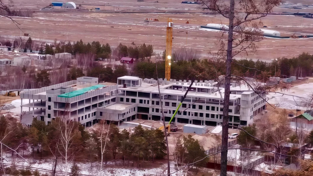 В настоящее время строительная компания «Сэттэ» завершила устройство монолитного каркаса здания. Ведется кладка наружных стен и внутренних перегородок. Начато обустройство кровли над зданием интерната. Параллельно идет благоустройство территории: забетонированы основания спортивной площадки и детских зон отдыха. Также установлены пожарные и водозаборные емкости, произведен монтаж септика, возводится фундамент котельной.