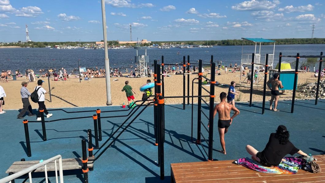 Городской пляж на 202 микрорайоне в этом году обновили, начиная с прилегающей зоны — набережной Романа Дмитриева. Появились новые тротуары, велосипедные дорожки, благоустроенный общественный туалет, комната матери и ребенка, спортивная площадка, зона отдыха с качелями и пр.