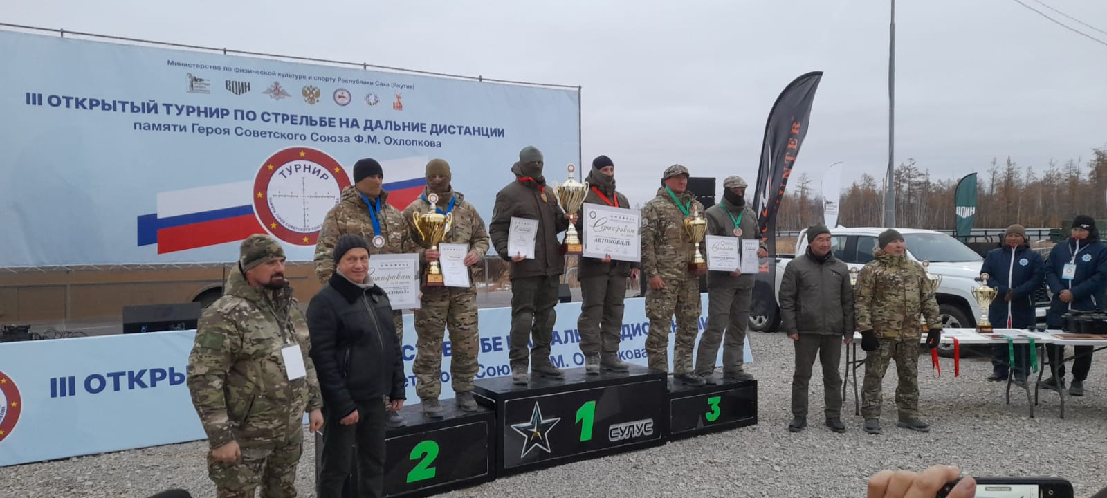 Итак, за первое место в категории «День» стрелки-якутяне получили главный приз — внедорожник «HAVAL». На втором месте армейская снайперская пара «Белый» (стрелок) и «Добрый» (корректировщик). Им вручен вездеход «Сокол». На третьем месте саратовские стрелки — братья Сергей и Александр Антоновские, получившие снайперскую винтовку и сертификат на 500 тысяч рублей.