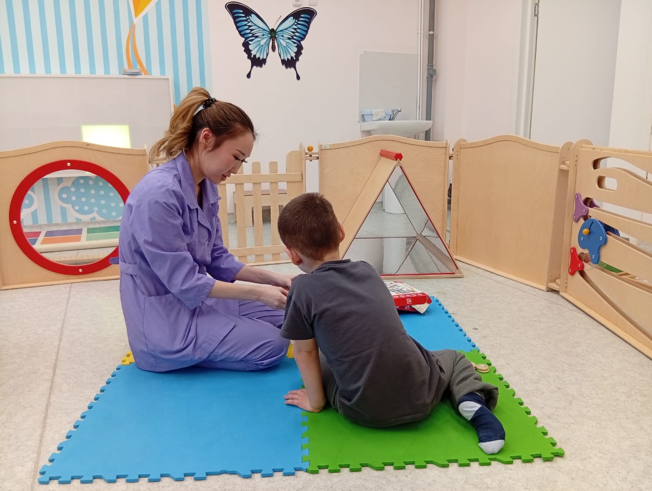 — Когда ребенок приходит в наш Центр, мы его тестируем, проводим комплексную диагностику, смотрим, по каким параметрам у него идёт задержка в развитии. И на основании полученных результатов составляем маршрут реабилитации.