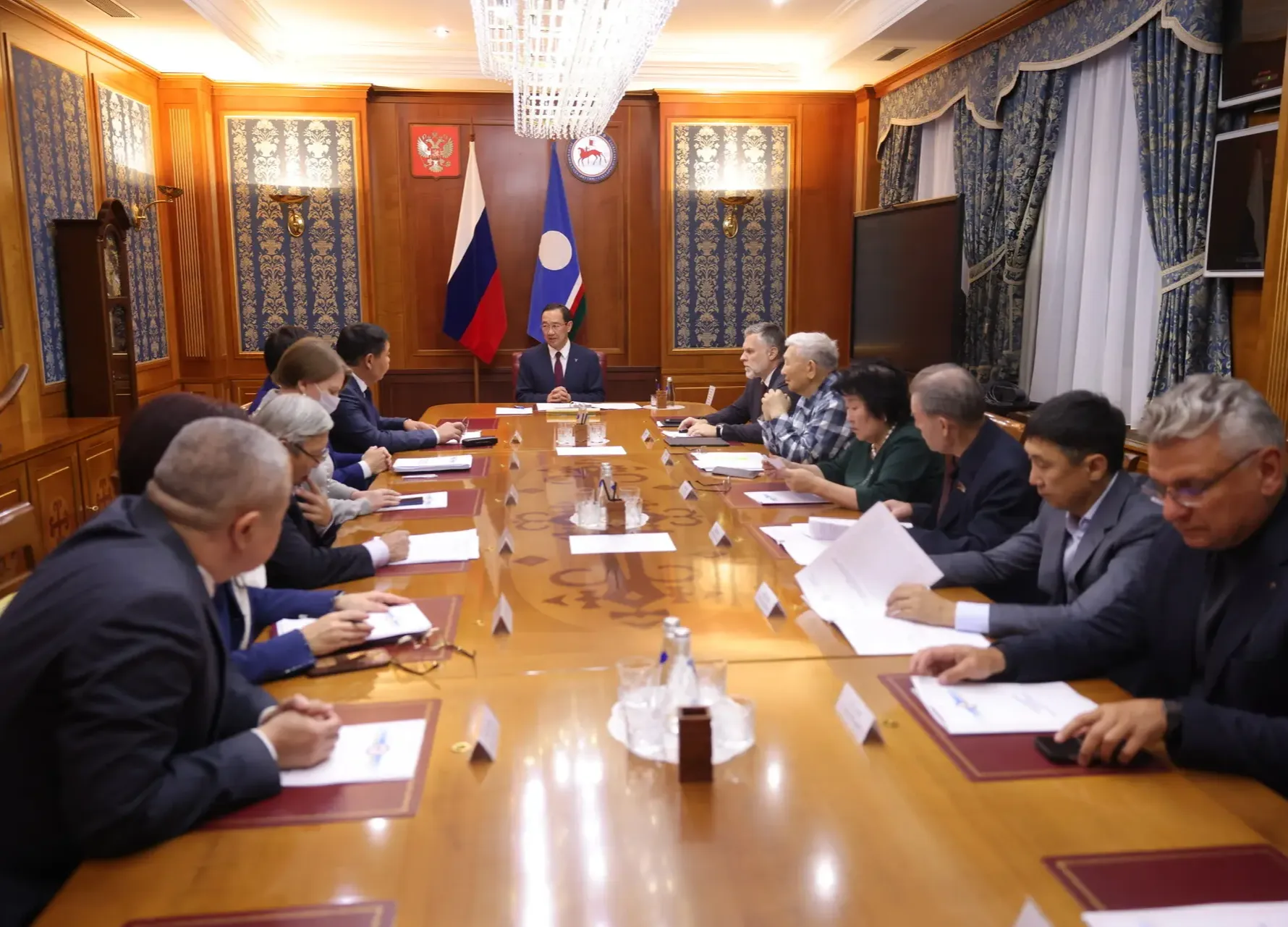 На совещании, которое провел Глава Якутии Айсен Николаев, выступили руководители рабочих групп по рассмотрению предложений от субъектов права конституционной инициативы. Народный депутат республики Владимир Прокопьев отметил, что представленный проект конституционного закона внесён с соблюдением формы и порядка внесения подобных закинициатив и рекомендовал Конституционной комиссии принять законопроект к рассмотрению. Как подчеркнул руководитель группы экспертов Конституционной комиссии, руководитель Администрации Главы и Правительства Якутии Георгий Михайлов, группой принято решение о поддержке проекта конституционного закона о внесении изменений и дополнений в Конституцию республики.