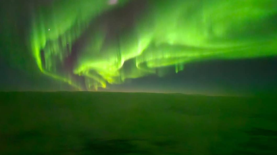 «Изумрудные ленты зажигались и разливались неспешными реками», — пишут в телеграм-канале авиаперевозчика.
