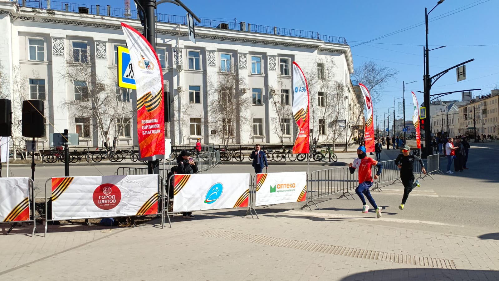 В массовом забеге в честь 80-летия Великой Победы, состоявшемся в Якутске 8 мая, первым финишную черту пересёк 40-летний работник Сбербанка Сергей Исаков. Его время на дистанции 4 километра — 14 минут 40 секунд.