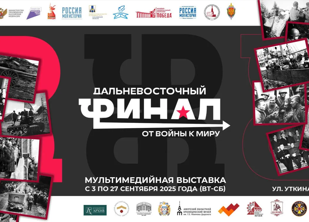 Спустя 80 лет после завершения Советско-японской войны выставочный проект «Дальневосточный финал. От войны к миру» представил новые, в том числе рассекреченные документы и фотографии по истории завершающего этапа Второй мировой войны. Посетители выставки смогут узнать о Маньчжурской стратегической наступательной операции, Южно-Сахалинской наступательной и Курильской десантной операциях, медиках и военных фотографах — обо всем том, что поставило финальную точку в самой страшной войне в истории человечества.