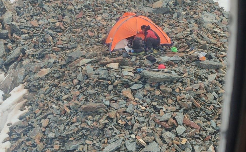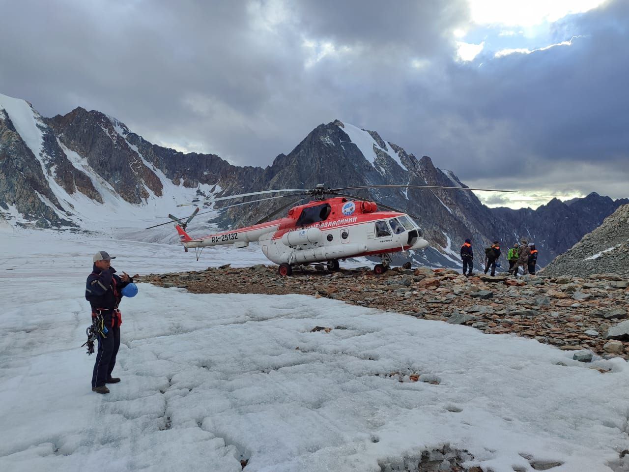 «Вертолет подлетел на ледник Обручева, намереваясь перелететь через седло на ледник Кюретер. Однако седло было закрыто облаками, поэтому сели на ледник Обручева, подождали полтора часа, пока рассеется туман, потом перелетели через седло и развернулись. Обнаружили пострадавших на полке на высоте 2500 метров в 18.58», — приводятся слова начальника управления поисково-спасательных работ Батыра Сейдалова.