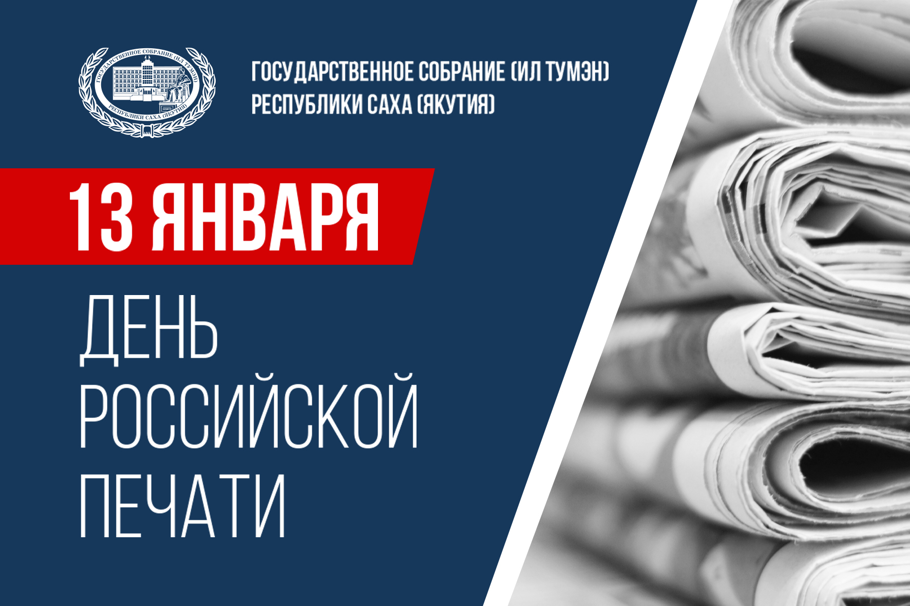 От имени Государственного Собрания (Ил Тумэн) Республики Саха (Якутия) и от себя лично поздравляю вас с профессиональным праздником – Днем российской печати!
