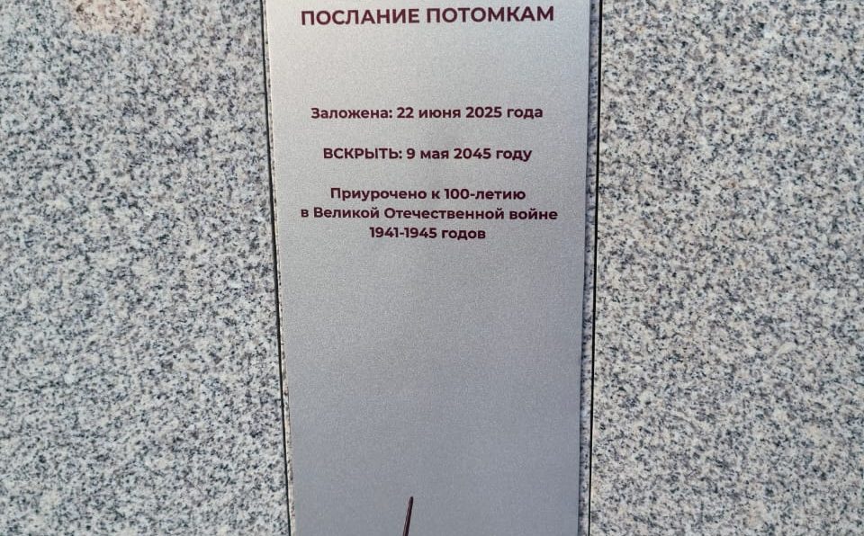 Капсулу заложили совсем недавно в связи с празднованием 80-летия Победы в ВОВ, а вскроют через 20 лет — к столетию. Внутри находится послание потомкам, дополненное цифровым свидетельством современности.