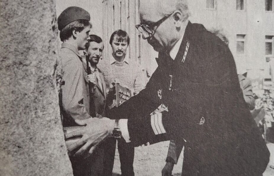 В газетах и книгах сохранились фотографии, на которых ветеран ВОВ, председатель городской комиссии Фонда мира, замдиректора дирекции строительства Южно-Якутского угольного комплекса Вадим Бондарь держит в руках контейнер.