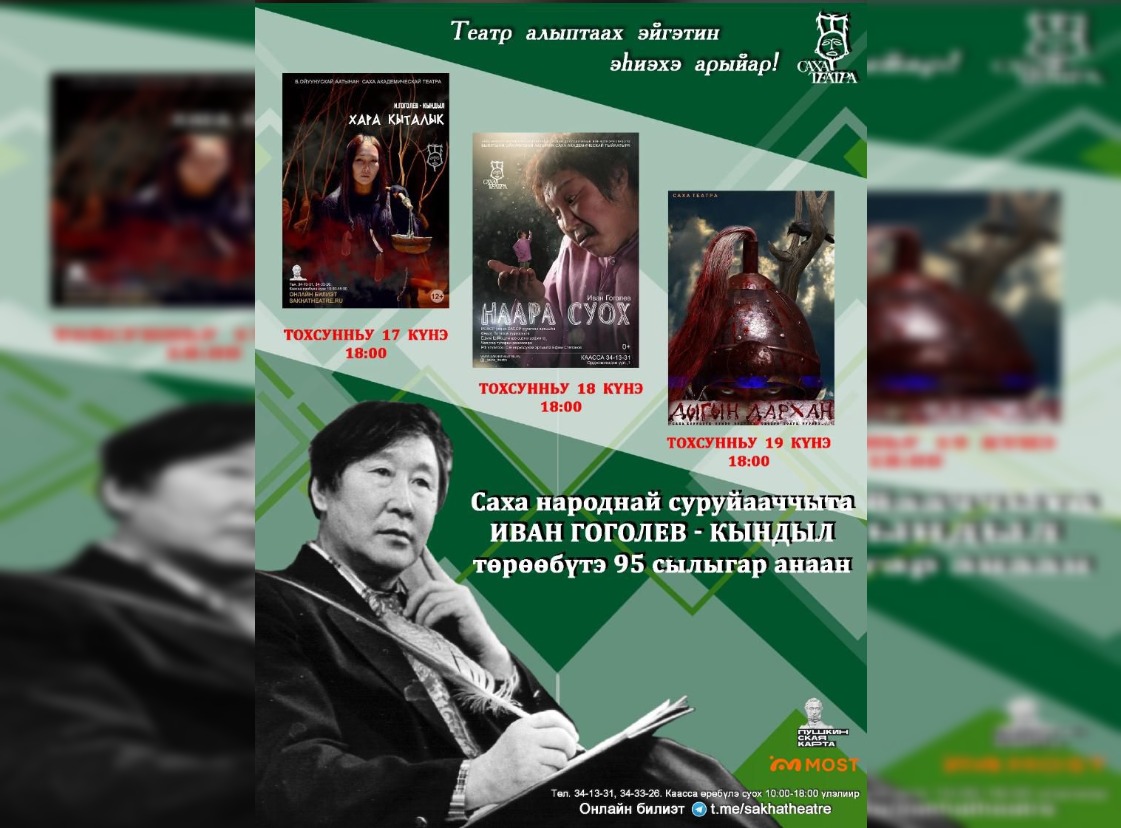 К 95-летию народного поэта Якутии, писателя и драматурга Ивана Гоголева-Кындыла Саха театр приглашает на спектакли по его произведениям и поэтический вечер.