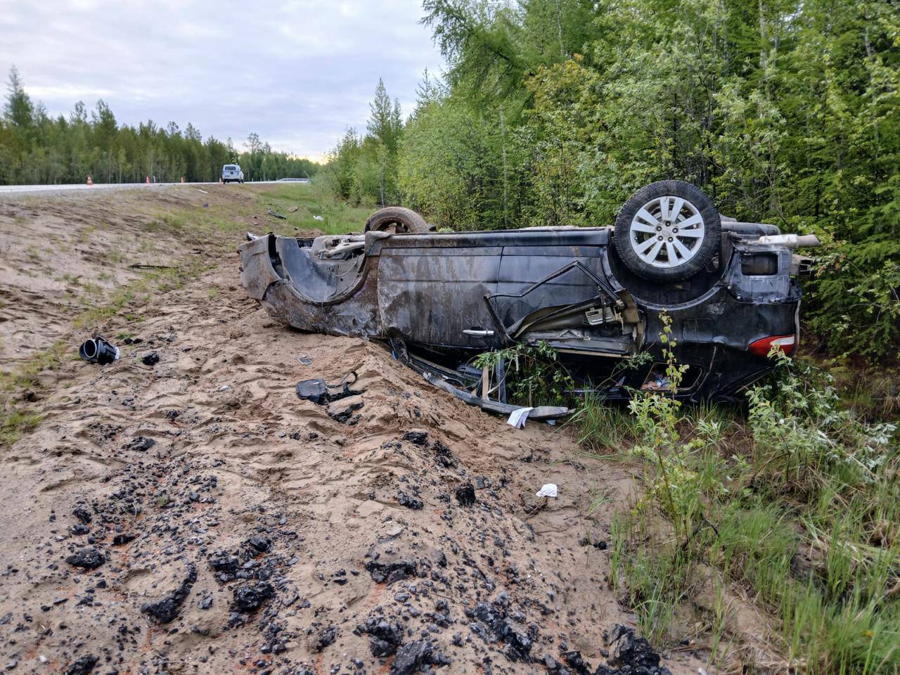 В субботу на федеральной автодороге (ФАД) «Вилюй» произошло трагическое ДТП, в результате которого погибли два человека. По информации ГАИ, около 3 часов ночи 7 июня водитель 1984 года рождения, управляя автомобилем «Субару Б9 Трибека», двигался со стороны города Вилюйска в направлении Верхневилюйского района. На 596 км ФАД он не справился с управлением и допустил опрокидывание транспортного средства.