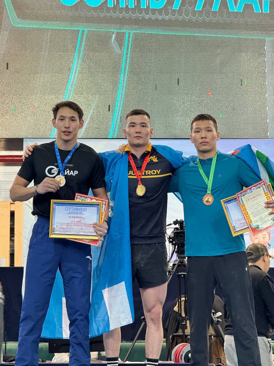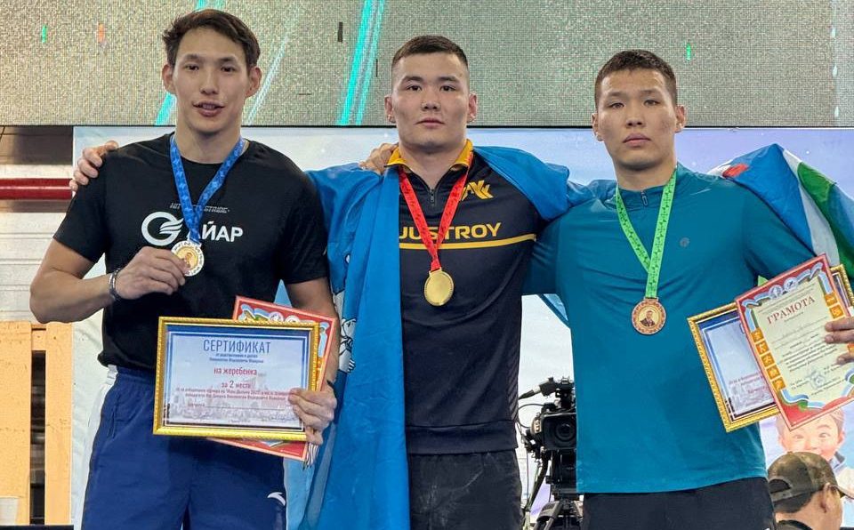 Чемпион в Чурапче Вячеслав Дьяконов (в центре), второй призёр Яков Дмитриев (слева), Артём Дьяконов (справа). Фото "Спорт Якутии"