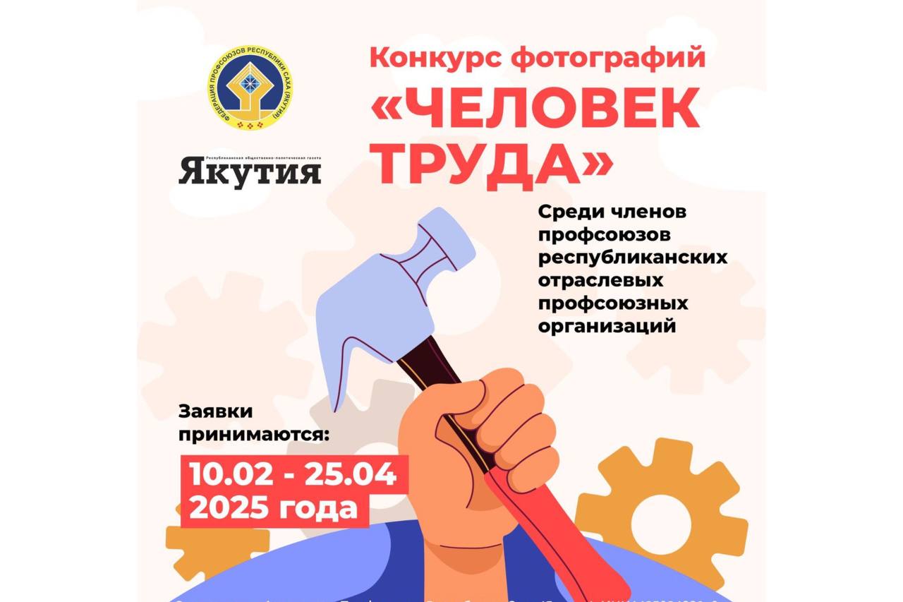 Федерация профсоюзов республики и редакция газеты «Якутия» объявляют о начале фотоконкурса «Человек труда» среди членов республиканских отраслевых профсоюзных организаций. Его цель — показать через фотоискусство яркий образ трудящегося, привлечь внимание к теме труда и собрать материалы для будущего фотоальбома «Люди труда Якутии».