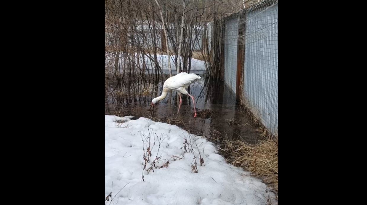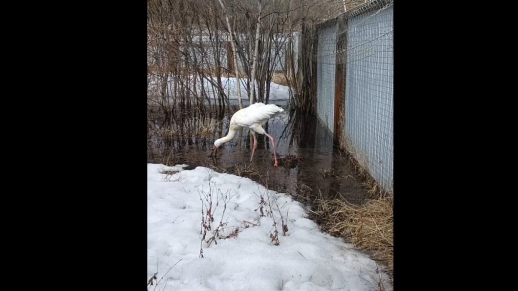Республиканский зоопарк «Орто Дойду» опубликовал видео из вольера стерхов. На нем благородная птица разгребает старую траву в огромной луже и что-то выискивает.