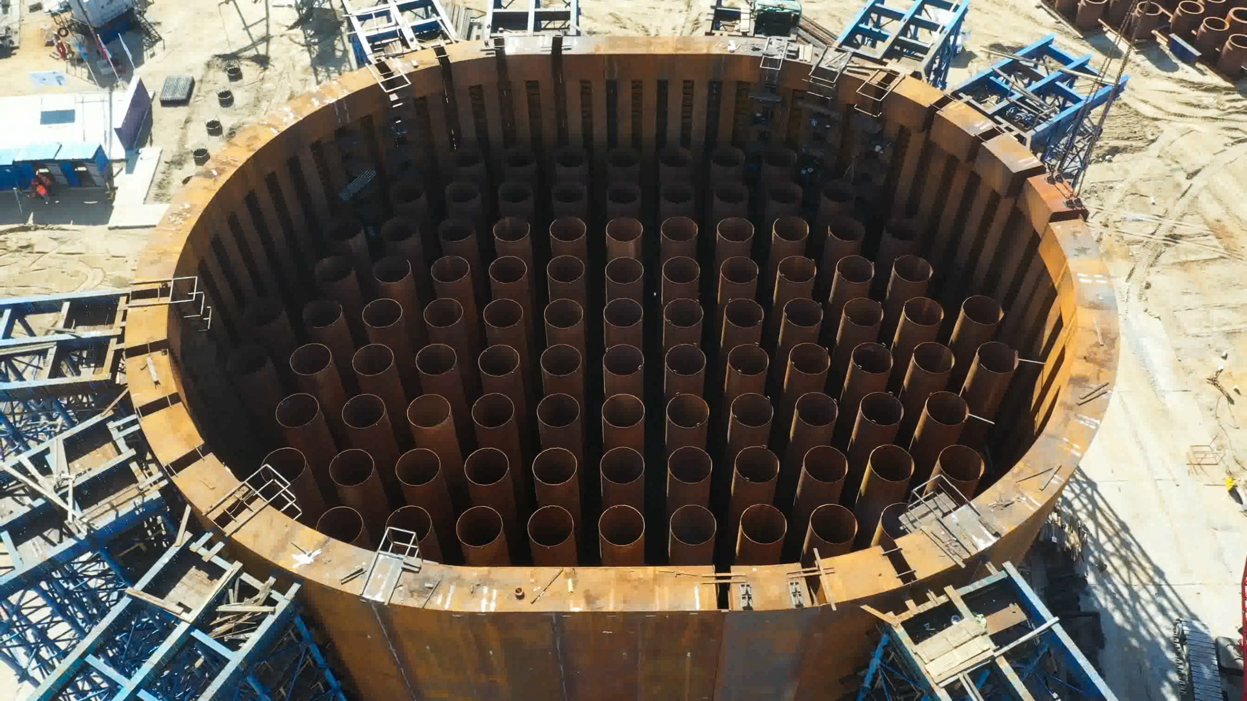 Не так давно мостостроители завершили монтаж металлоконструкций первого коффердама, необходимого для сооружения пилона вантового моста в русле реки Лены, у правого берега. А теперь они стали собирать стеновые панели коффердама для центрального пилона, сообщили в Группе компаний «ВИС». Представители российского холдинга уточнили, что это самая большая из трёх металлических конструкций. Ее диаметр составляет 46 метров, высота 17,32 метра, а общий вес – почти 2835 тонн. Высота пилона, который будет сооружён с помощью коффердама, составит 284,5 метра.