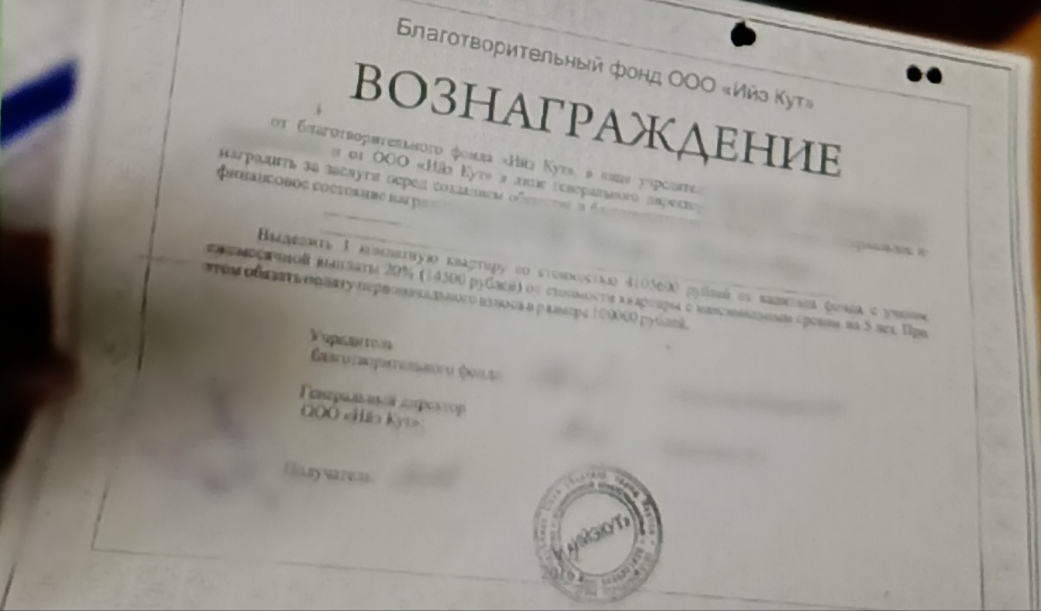 Однако «кооператив» ее рос как на дрожжах, для чего она предпринимала агитационные поездки в близлежащие районы. В доверие махинаторша втиралась легко, убеждая своих жертв приводить с собой и родственников. Были в ее арсенале лотереи и розыгрыши с призами, грамоты и подарки постоянным клиентам, так называемые «добрые карты», якобы дающие право на привилегии при выплатах дивидендов, а за крупный взнос — «сертификат» на предоставление квартиры в строящемся в 203‑м микрорайоне Якутска доме.
