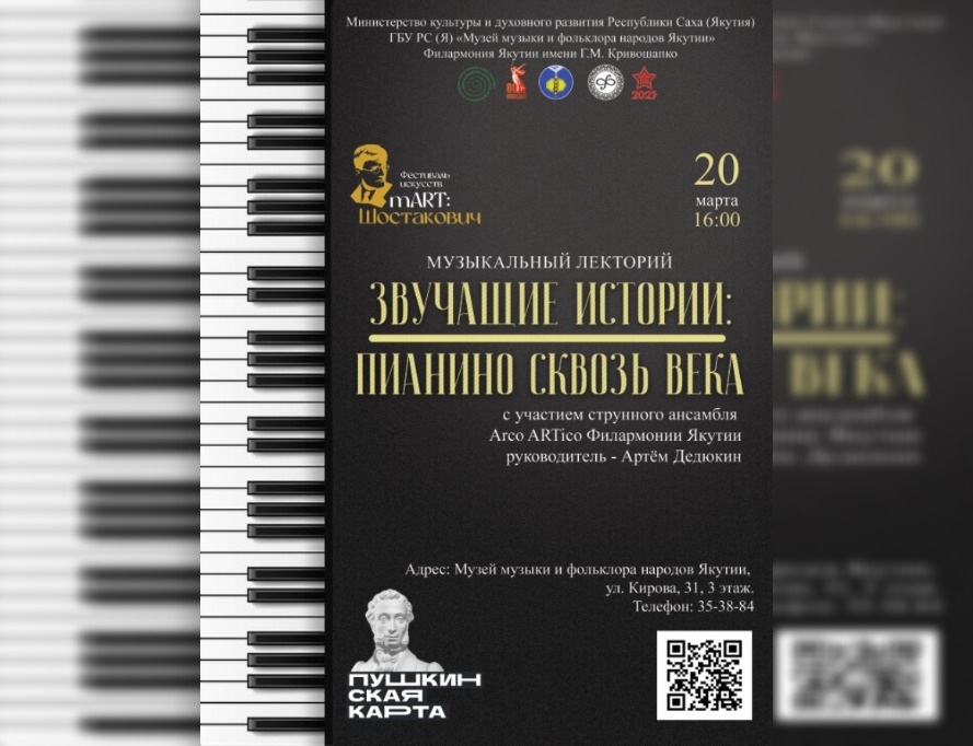 20 марта в Музее музыки и фольклора народов Якутии в рамках фестиваля искусств «mART:Шостакович» состоится музыкальный лекторий «Звучащие истории: пианино…