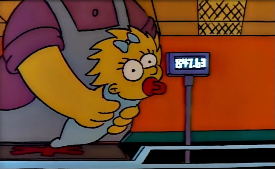 Сериал "Симпсоны" выходит аж с декабря 1989 года по настоящее время. Интересный момент: в одной из сцен заставки, где Мэгги пробивают на кассе, можно увидеть ее цену — 847.63 доллара. В 80-х столько приходилось тратить семье в месяц на одного ребенка. Позже "цена" Мэгги изменилась. Сколько она стоила в 2001 году?
